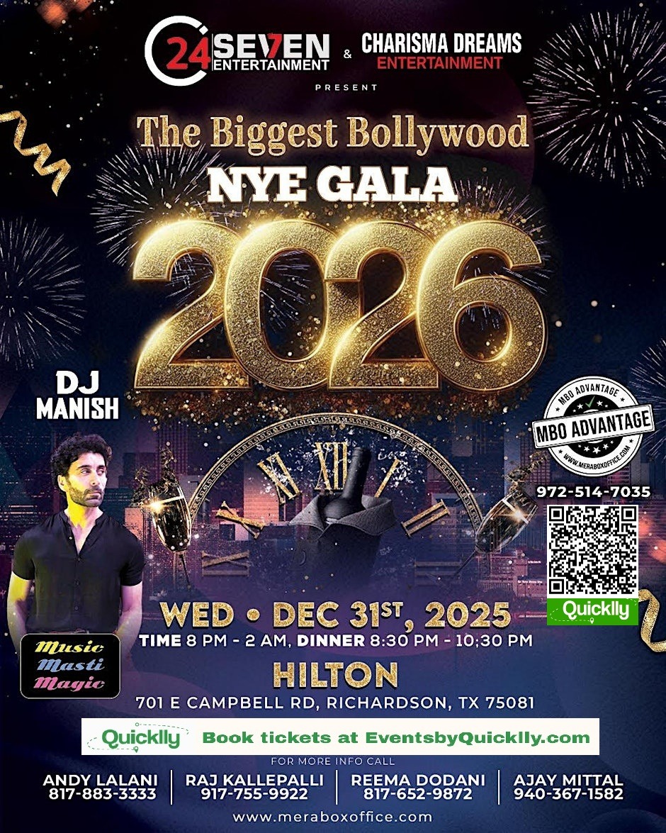 Bollywood NYE 2026 – Dallas’ Biggest Desi New Year Party!