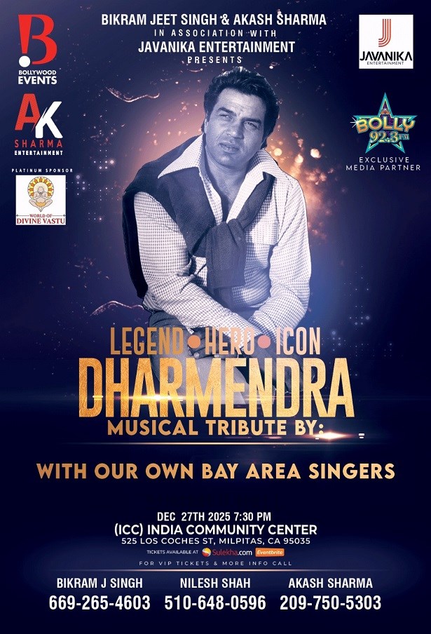 Immerse yourself in a nostalgic journey of Hindi and Bollywood music at the "DHARMEDRA - Musical Tribute in Bay Area". Scheduled for the 27th of December, 2025, this grand musical event aims to pay homage to the golden era of Bollywood, featuring timeless classics and soul-stirring melodies. Don't miss this live concert; a perfect blend of nostalgia and entertainment, designed to captivate both young and old Bollywood music enthusiasts.
