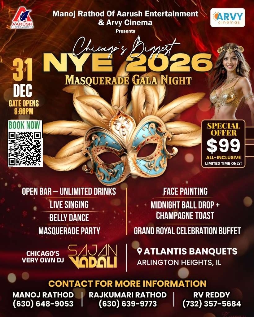 Get ready to kick-start the New Year in style with the most awaited Bollywood New Year party in Illinois – New Year 2026 in Arlington Heights. Scheduled for the evening of December 31st, 2025, this gala event promises a night full of dance, Bollywood music, DJs, food, drinks, and non-stop entertainment. The event is a fusion of Hindi, Punjabi, and multilingual music, making it the perfect platform for a multicultural New Year celebration in Illinois. So, join us for this fantastic New Year’s Eve party near Chicago and be a part of an unforgettable nightlife experience.