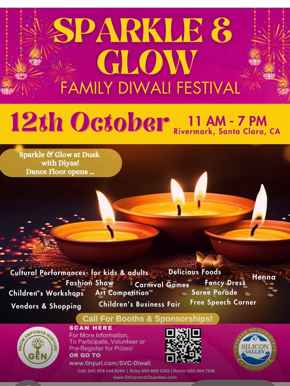 Oct 23, 2025; 3PM- 8:30PM, Sparkle and Glow' Diwali Night Market, Rivermark, Santa Clara CA